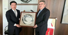 北京時間10月18日,在意大利助威晉江成功申辦2020年世界中學(xué)生運動會后,舒華股份有限公司董事長兼總裁張維建,與安踏董事局主席兼CEO丁世忠等一行人士,一同來到瑞士拜訪國際奧委會主席巴赫,得到了巴……